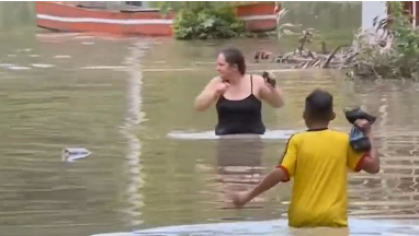 In some areas, water levels were waist deep and some residents had to resort to travelling down streets on their canoes.