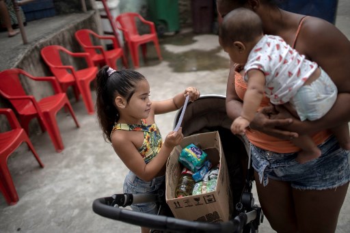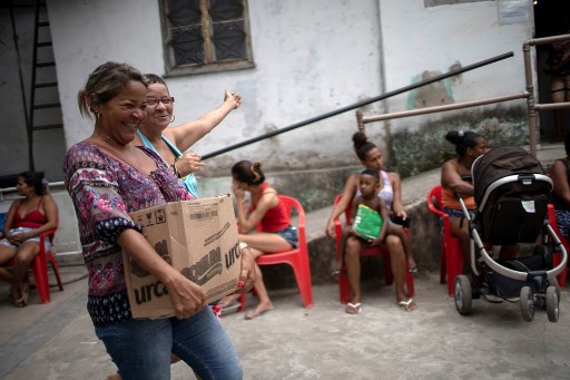 “This is very important and valuable to people here,” says Monica Oliveira da Silva, a cleaner among those waiting in a closely-packed line, many with babies and young children.