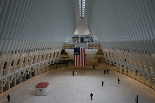 NEW YORK, NY – MAY 08: The Oculus transportation hub and mall stands nearly deserted in lower Manhattan as the coronavirus keeps financial markets and businesses mostly closed on May 08, 2020 in New York City. Spencer Platt/Getty Images/AFP