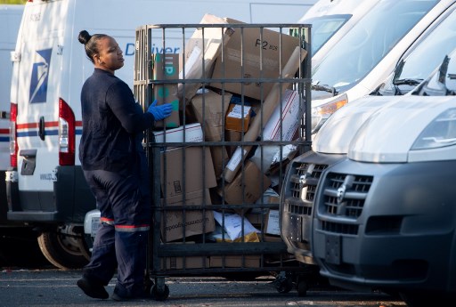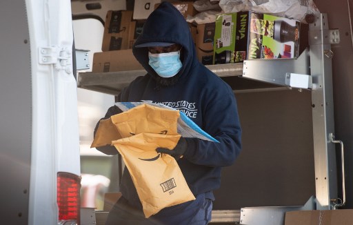 But as with many ordinary things as the coronavirus crisis unfolds, the US Postal Service — already compromised by a mountain of debt — has a most uncertain future. (Photo by SAUL LOEB / AFP)