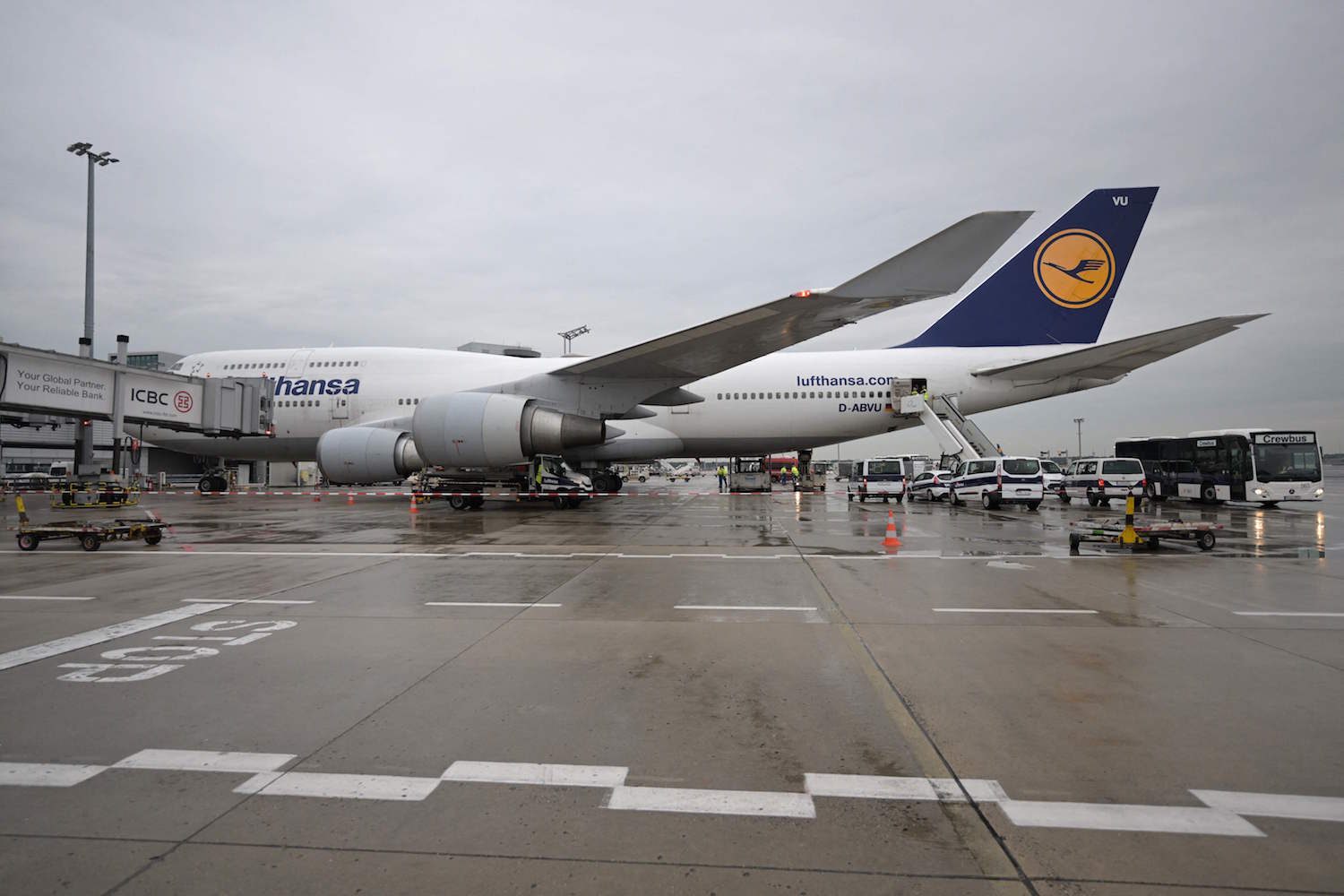 The first flight repatriating German nationals landed in Frankfurt Thursday carrying 372 people.