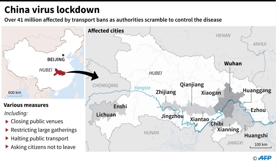 Officials also confirmed the second virus death outside the Wuhan region, saying a patient died in Heilongjiang province, 2,000 kilometres (1,200 miles) to the northeast.