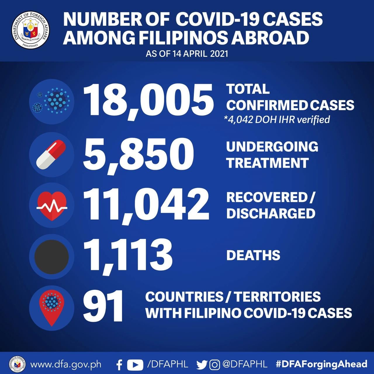 No additional death due to COVID-19 was reported, which means the COVID-19 death toll among overseas Filipinos remains at 1113.