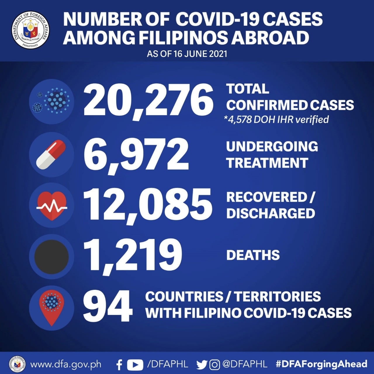 (Eagle News) — COVID-19 cases among overseas Filipinos are now at 20276.
