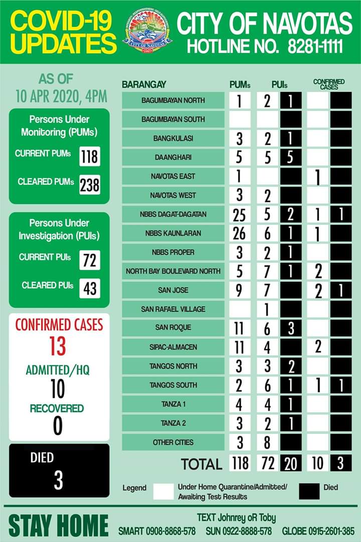 (Eagle News)–The number of coronavirus disease 2019 cases in Navotas has reached 13.