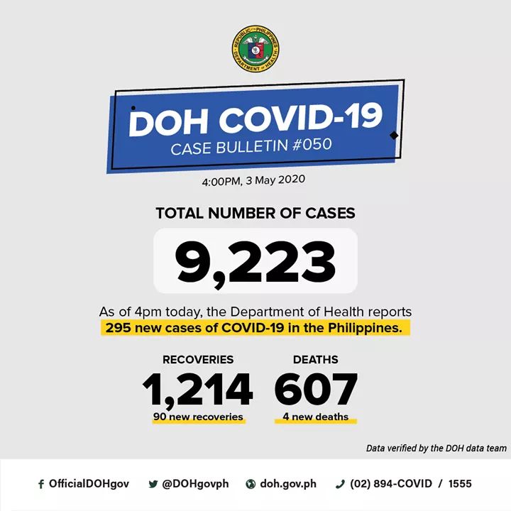 The Department of Health on Sunday, May 3, said with the new cases, COVID19 cases in the country now stand at 9223.
