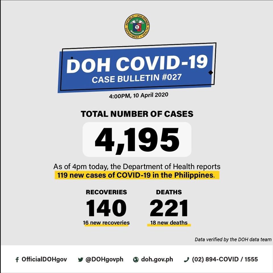 This was after the Department of Health on Friday, April 10, announced 119 new COVID-19 cases.