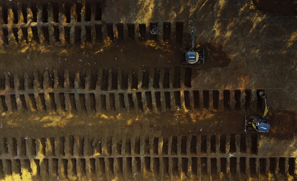 In Brazil, the country with the third-highest death toll in the world, night shifts have been added to several cemeteries as diggers work around the clock to bury the dead.