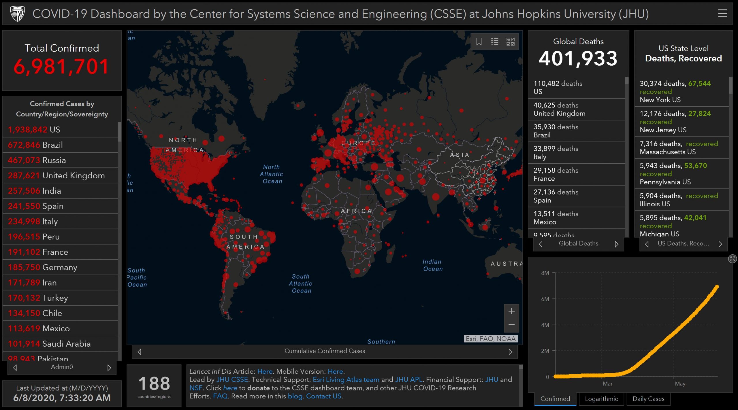 Here is the Johns Hopkins University tally of top 15 countries with COVID-19 cases as of 7:33 a.m. June 8, 2020 (Philippine time)