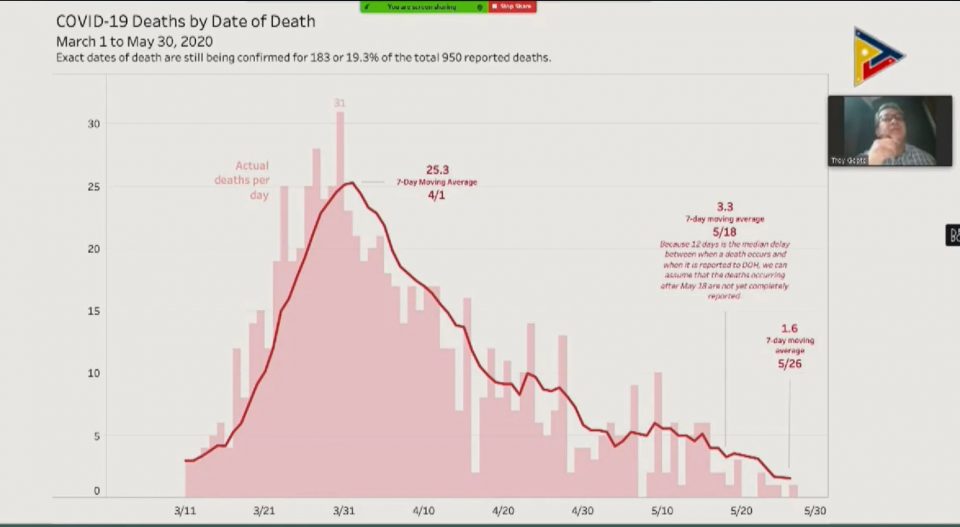 The number of deaths due to COVID also showed steep decline this April and May, Dr. Gepte said. This was in sharp contrast to the sharp increase in COVID-19 deaths in March.