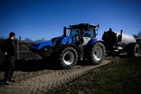 Beaumontois-en-Périgord, France (AFP) — A French farmer steps away from his barn and fills up a tractor with fuel made from the manure of his cows, an attempt to put their climate-damaging methane to good use.