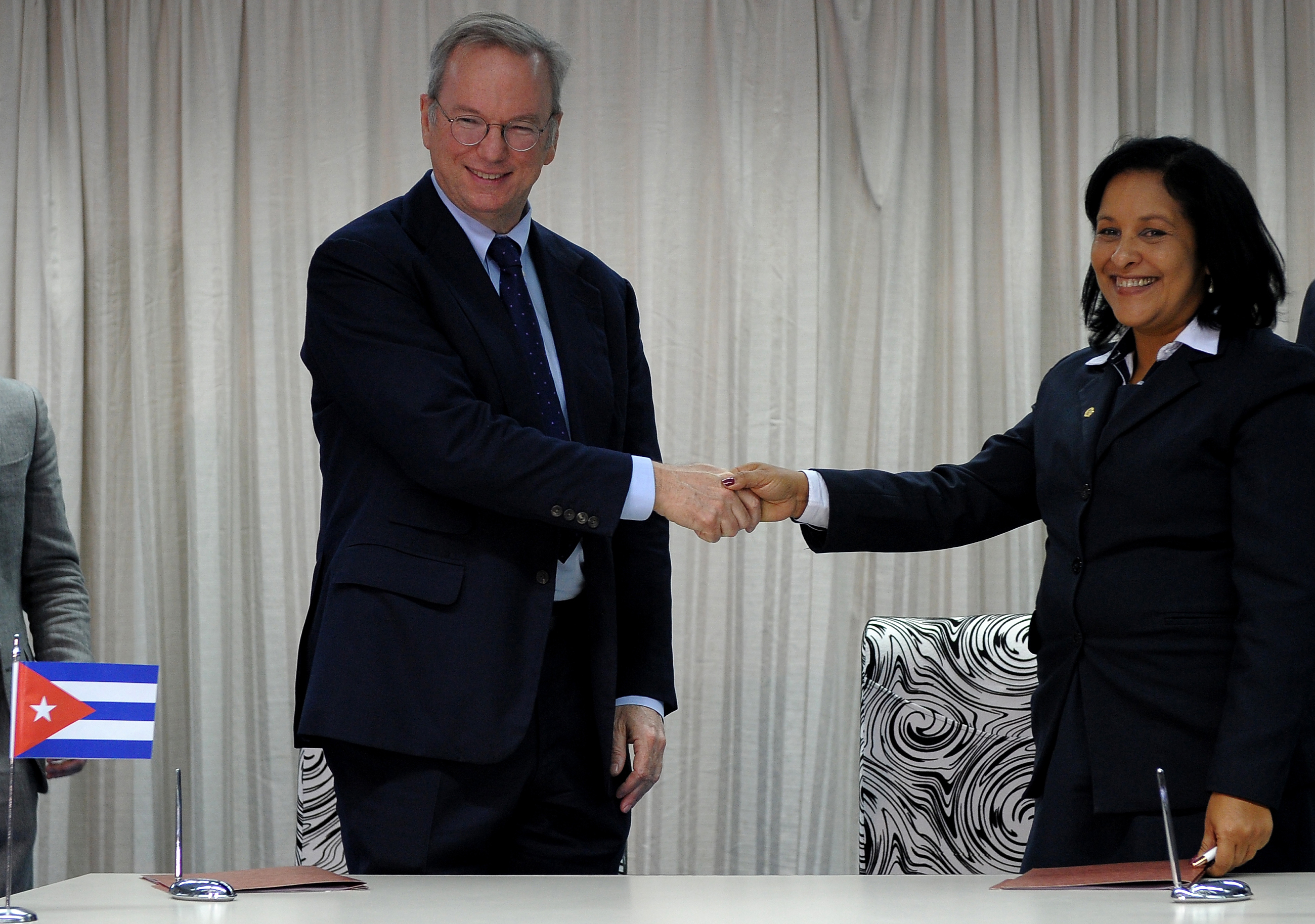 Eric Schmidt, executive chairman of Google parent company Alphabet, signed the deal in Havana alongside the head of Cuban state telecommunications company Etecsa, Mayra Arevich.