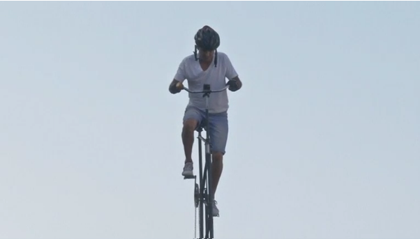 The original plan was for Guirola to ride the tall bike 100 meters before the Capitol.