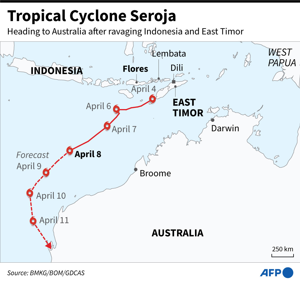 SYDNEY, Australia (AFP) — Australian authorities on Thursday urged holidaymakers to evacuate a stretch of the country’s western coastline in the path of a cyclone that has devastated parts of Indonesia and East Timor.