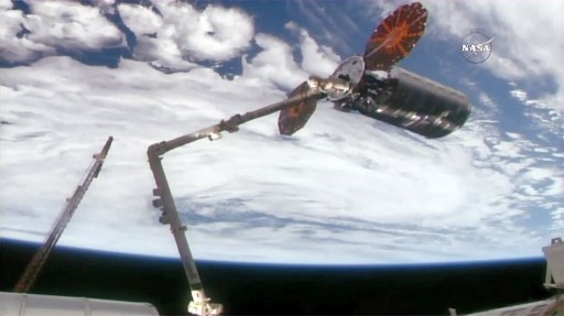 The cargo ship will stay attached to the orbiting outpost until early December, when astronauts will pack it with trash and send it away.