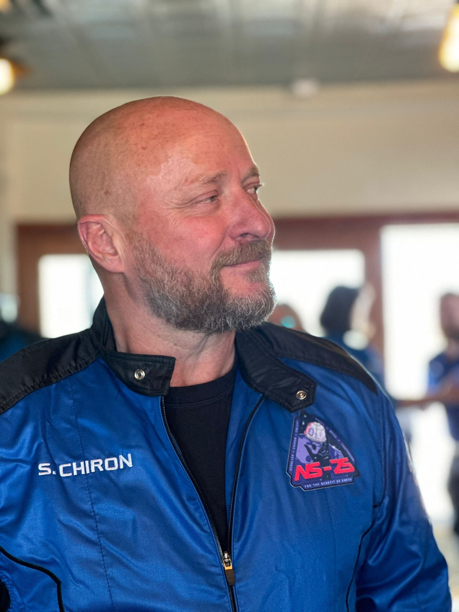 “This morning, I put on my flight suit for the first time — my wife found me very handsome as an astronaut,” Chiron joked on the phone, as he prepared for a day of training including a flight simulator.