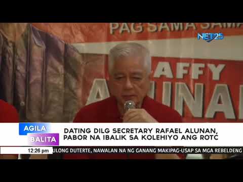 (Eagle News) — Pabor si dating Department of Interior and Local Government (DILG) Secretary Rafael Alunan III sa mungkahi ni Pangulong Rodrigo Duterte na ibalik ang Reserve Officers’ Training Corps (ROTC) sa kolehiyo.
