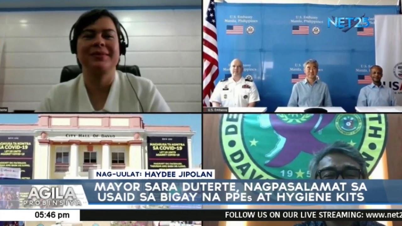 (Eagle News) – Pinasalamatan ni Davao City Mayor Sara Duterte ang United States Agency for International Development o and USAID sa tulong at suporta nila sa City Government of Davao, sa Davao City Health Office, sa Department of Health, at sa Southern Philippines Medical Center na tumanggap ng mga Personal Protective Equipment (PPEs) na kanilang ibinigay.
