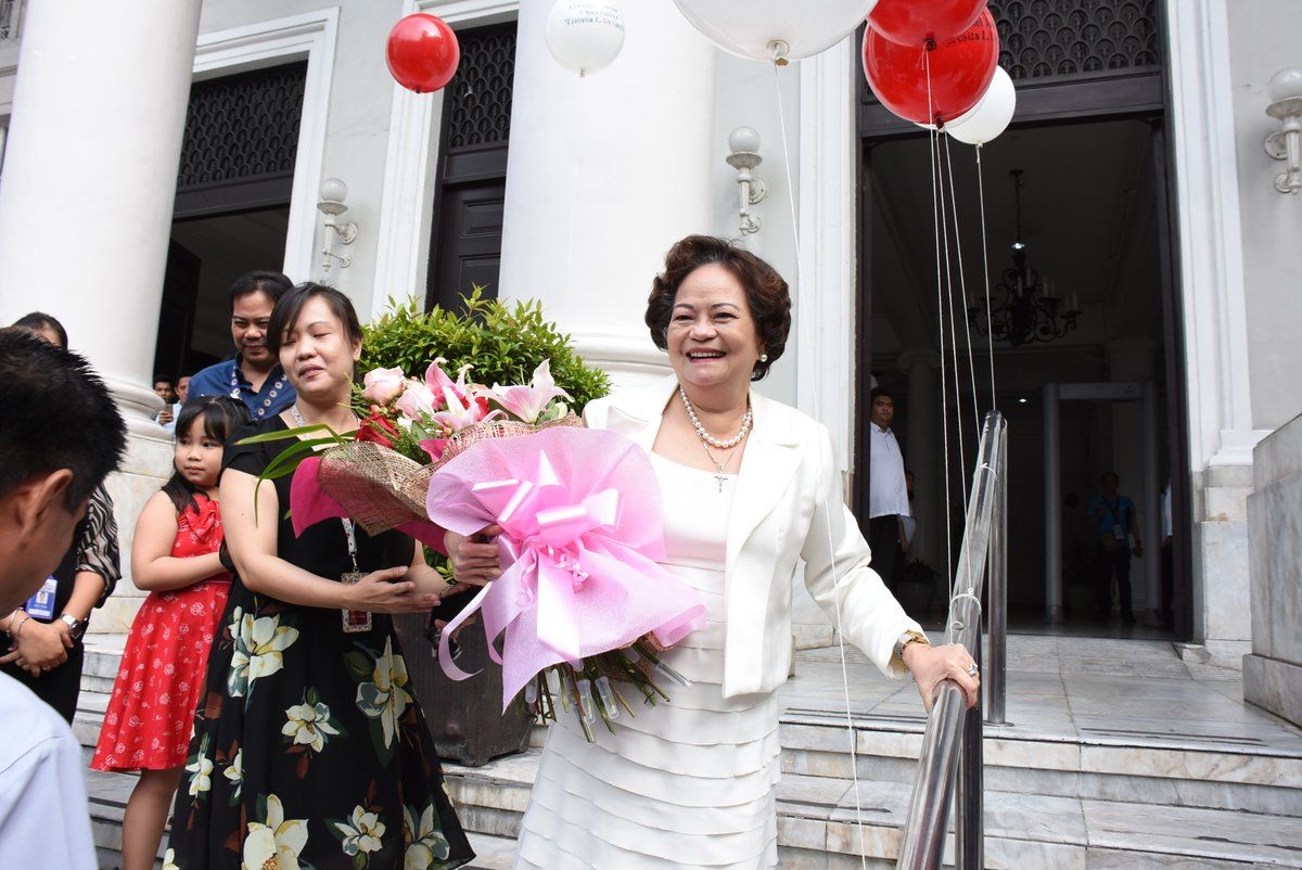 Balloons were seen hanging by the fences and facade of the SC, which at one time had been filled with red ribbons at the height of calls for Maria Lourdes Sereno, De Castro’s predecessor, to resign.