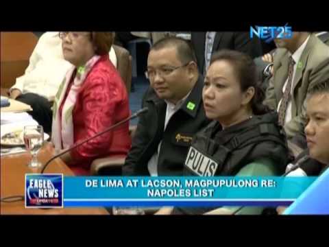 Justice Secretary Leila De Lima will meet with Rehabilitation Czar Panfilo Lacson to compare their respective documents regarding the list made by alleged “pork barrel queen” Janet Lim Napoles. De Lima and Lacson are concerned about the consistency of the documents particularly on the names of those who were allegedly involved in the pork barrel scam.