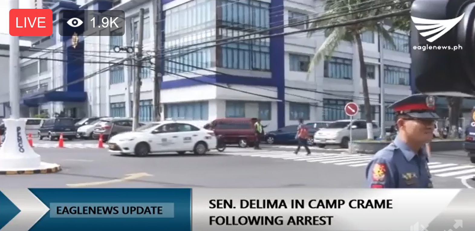 (Eagle News) — Senator Leila de Lima has just completed booking procedures inside the Philippine National Police (PNP) headquarters in Camp Crame, Quezon City, following her arrest at 8 a.m. Friday at the Senate for drug-related charges.