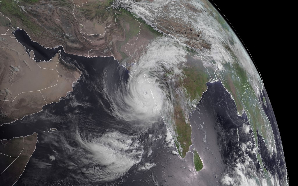 This National Oceanic and Atmospheric Administration (NOAA) satellite image taken May 17, 2021 at 04:00UTC shows Cyclone Tauktae on the path to reach Gujarat, India. – Cyclone Tauktae — India’s first major tropical storm this season — is moving northwards in parallel with the country’s western coast, bringing heavy rains, thunderstorms and strong winds to several states, the meteorological department said. (Photo by Handout / NASA/NOAA / AFP)