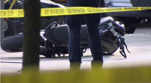 According to witnesses, the motorcycle crashed through the window of the Starbucks in Shaw Tower, near Jack Poole Plaza.