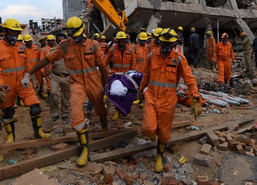 NEW DELHI, India (AFP) – The death toll from a collapsed apartment block outside Delhi rose to nine on Thursday as emergency workers pulled four more bodies from a huge pile of rubble and metal, India’s fire brigade said.