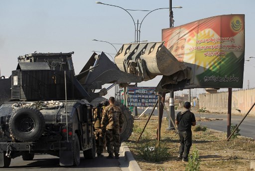 Thousands of residents fled Kurdish districts of Kirkuk for fear of clashes after Iraqi military forces launched operations against Kurdish fighters near the northern city, an AFP journalist said. / AFP PHOTO / AHMAD AL-RUBAYE