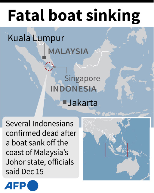 The vessel, which was carrying about 50 Indonesians seeking to enter neighbouring Malaysia illegally, capsized Wednesday in stormy weather off the southern state of Johor.