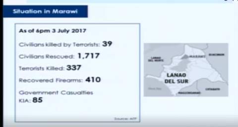 The AFP also said that at least 1,717 had been rescued, and that government forces had recovered 410 high powered firearms.