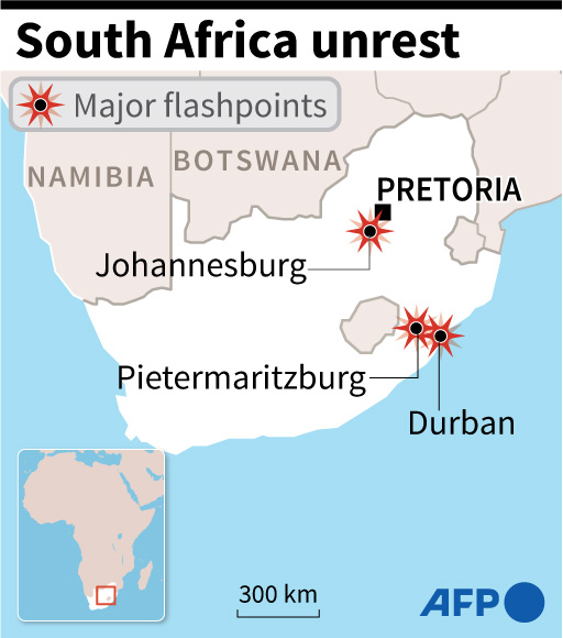 The raging unrest first erupted last Friday after former president Jacob Zuma started serving a 15-month term for contempt, having snubbed a probe into the corruption that stained his nine years in power.