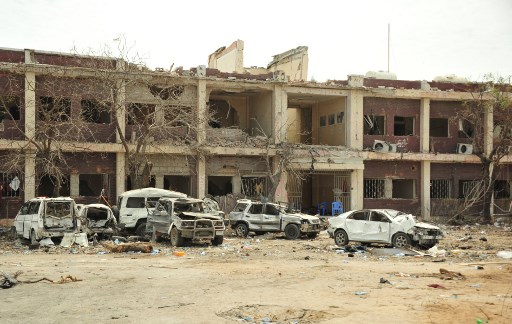 MOGADISHU, Somalia (AFP) — At least 14 people were killed in coordinated car bombings followed by an attack on a hotel in the Somali capital Mogadishu on Saturday, a security official said.