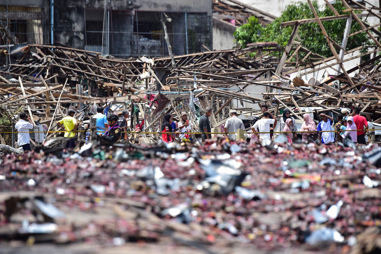 The blast Saturday afternoon in the town of Sungai Kolok was believed to have been caused by welding during construction work on a building storing fireworks illegally.