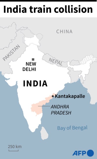 NEW DELHI, Oct 30, 2023 (AFP) – At least 13 people were killed and around 50 injured when two trains collided in southeast India, officials said on Monday, updating an earlier toll of eight.