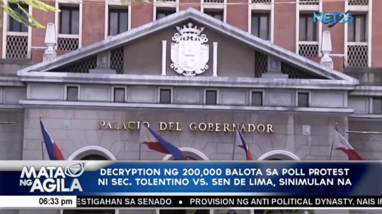 QUEZON CITY, Philippines (Eagle News) — Sinimulan na ng Commission on Elections (COMELEC) ang decryption ng ballot images kaugnay sa election protest na isinampa ni Presidential Adviser for Political Affairs Francis Tolentino laban kay Senadora Leila De Lima.