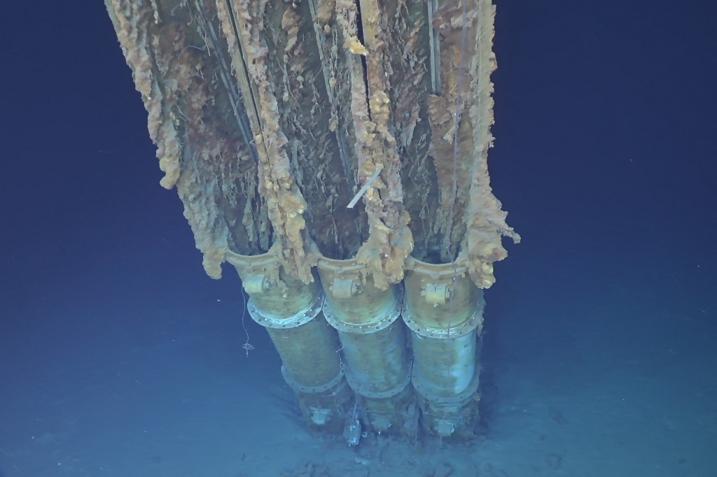 This undated handout photo received on June 25, 2022 from Caladan Oceanic and EYOS expeditions shows torpedo tubes of the wreck of navy destroyer USS Samuel B. Roberts, known colloquially as “Sammy B.” (Photo by Handout / Caladan Oceanic and EYOS expeditions / AFP)