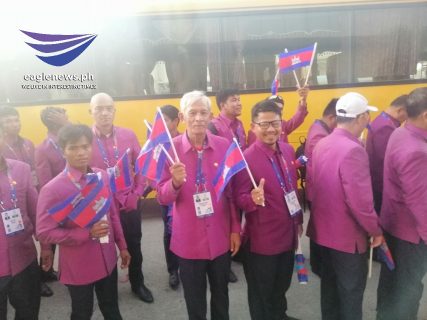 (Eagle News)–In this picture, delegates from Cambodia proudly raise their flags at the Philippine Arena.