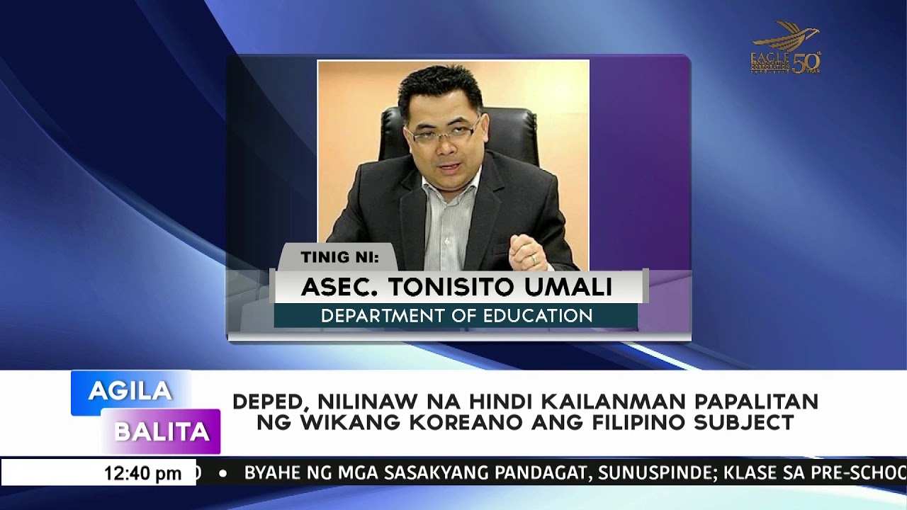 Pero sa panig ng DepEd, nilinaw ni Umali na hindi nila pinapalitan ng Korean language ang Filipino subject dahil mas palalawigin at mas lalaliman pa aniya ang pamamaraan ng pagtuturo nito bilang bahagi na rin ng K-to-12 Program ng kagawaran.