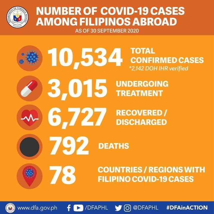 The DFA said the COVID-19 death toll of Filipinos abroad therefore remains at 792.