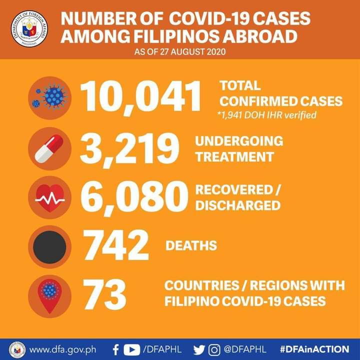 The DFA said with the development, the death toll among Filipinos abroad due to COVID-19 remains at 742.