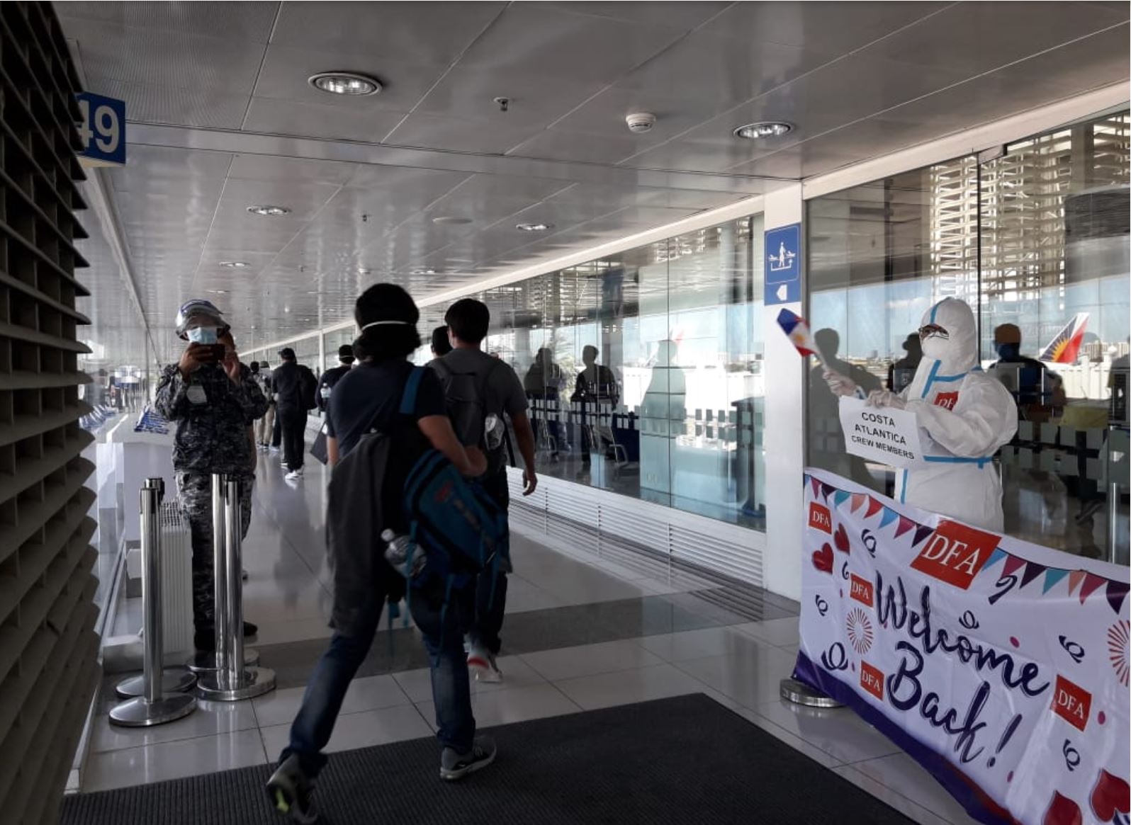 On May 5, Tuesday, the DFA welcomed the 125 Filipino crew members of Costa Atlantica cruise ship docked in Nagasaki, Japan, with permission from the Inter-Agency Task Force for the Management of Emerging Infectious Diseases (IATF) Sub-Task Group for the Repatriation of OFWs.