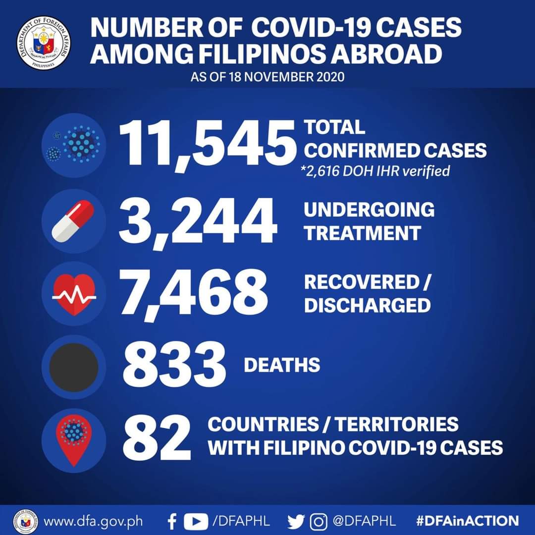 (Eagle News)–The Department of Foreign Affairs has confirmed three additional COVID-19 cases among overseas Filipinos.