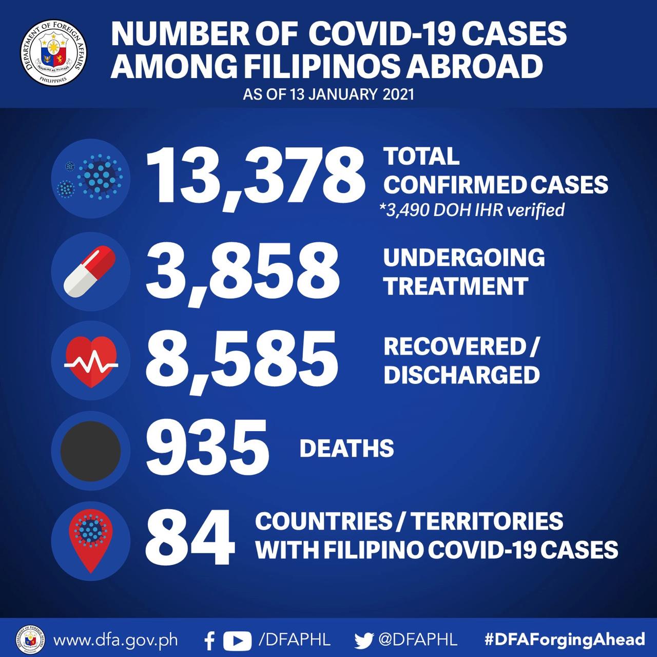 No additional fatalities were reported, which means the death toll among overseas Filipinos due to COVID-19 remains at 935.