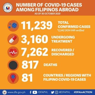 “The DFA personnel in our foreign service posts remain steadfast in partnering with local health authorities and agencies to ensure Filipinos’ awareness of and adherence to preventive measures against the COVID-19 pandemic, and commit to tirelessly attending to the needs of our people affected by this pandemic, whenever possible,” the DFA said.
