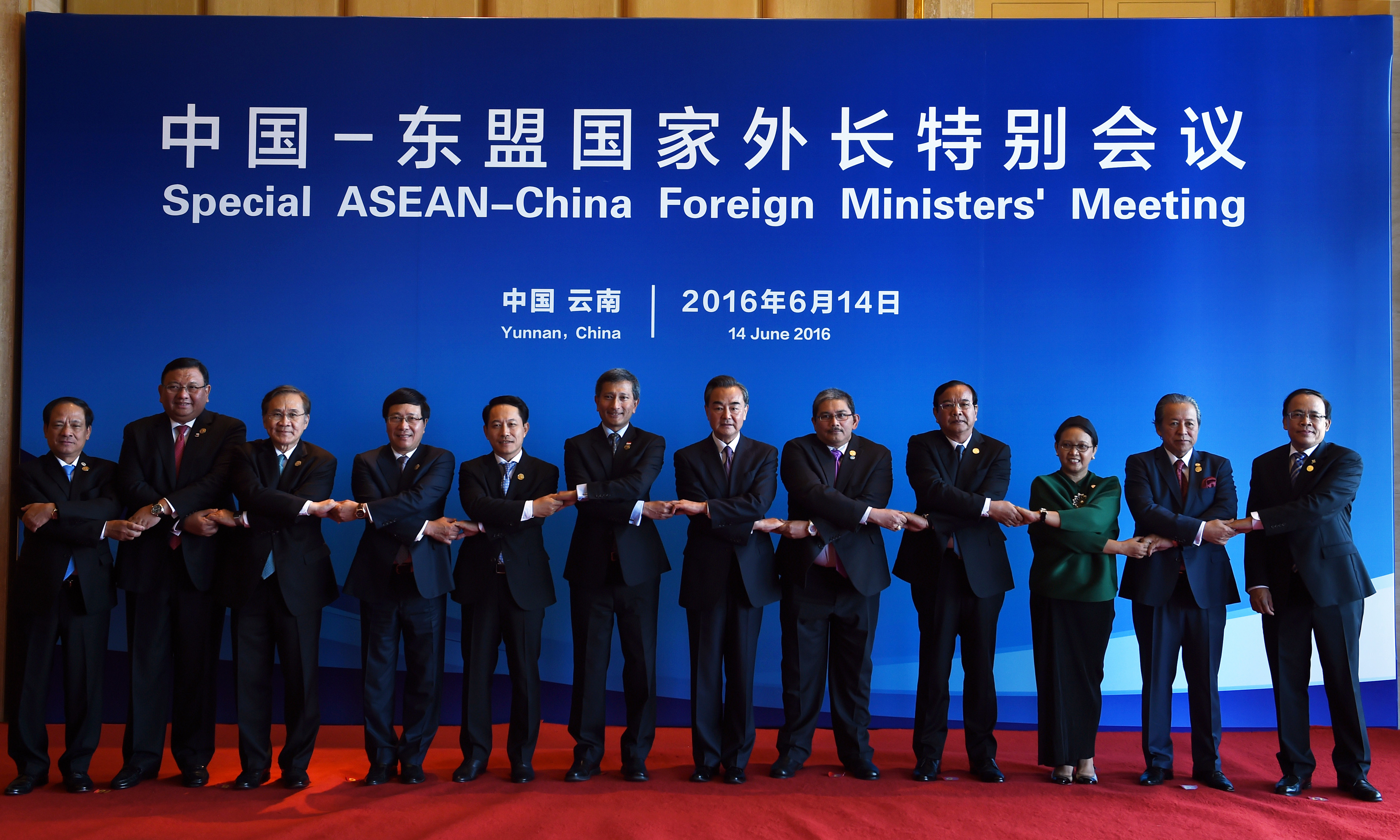 Countries in Southeast Asia have “serious concerns” over recent events in the disputed South China Sea, an unusually strongly worded communique issued by their foreign ministers in China said on June 14. / AFP PHOTO /