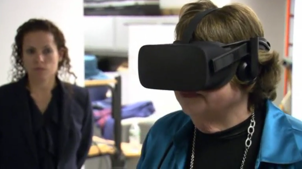 For her project, Lubetzky uses virtual reality environments in conjunction with a pressure sensing mat and a head tracking software in order to assess and treat problems with balance that are related to sensory issues.