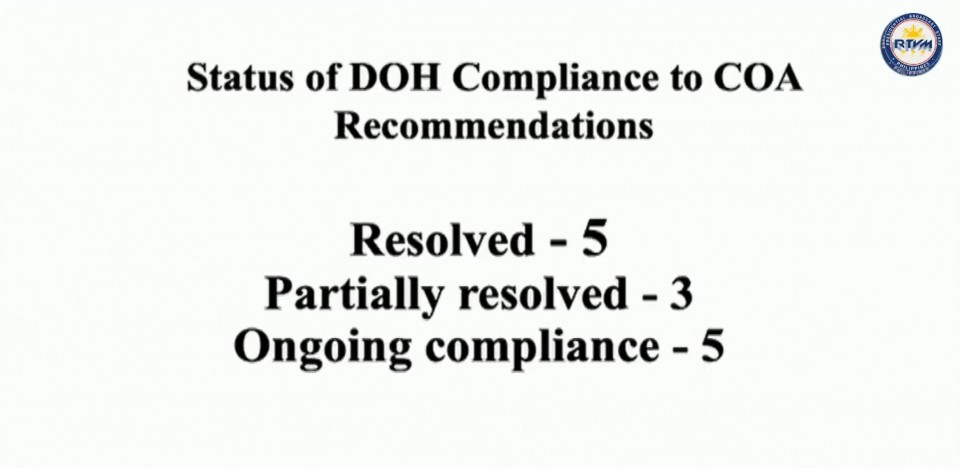 Health Undersecretary Leopoldo Vega explained how the DOH is complying with the COA requirements.