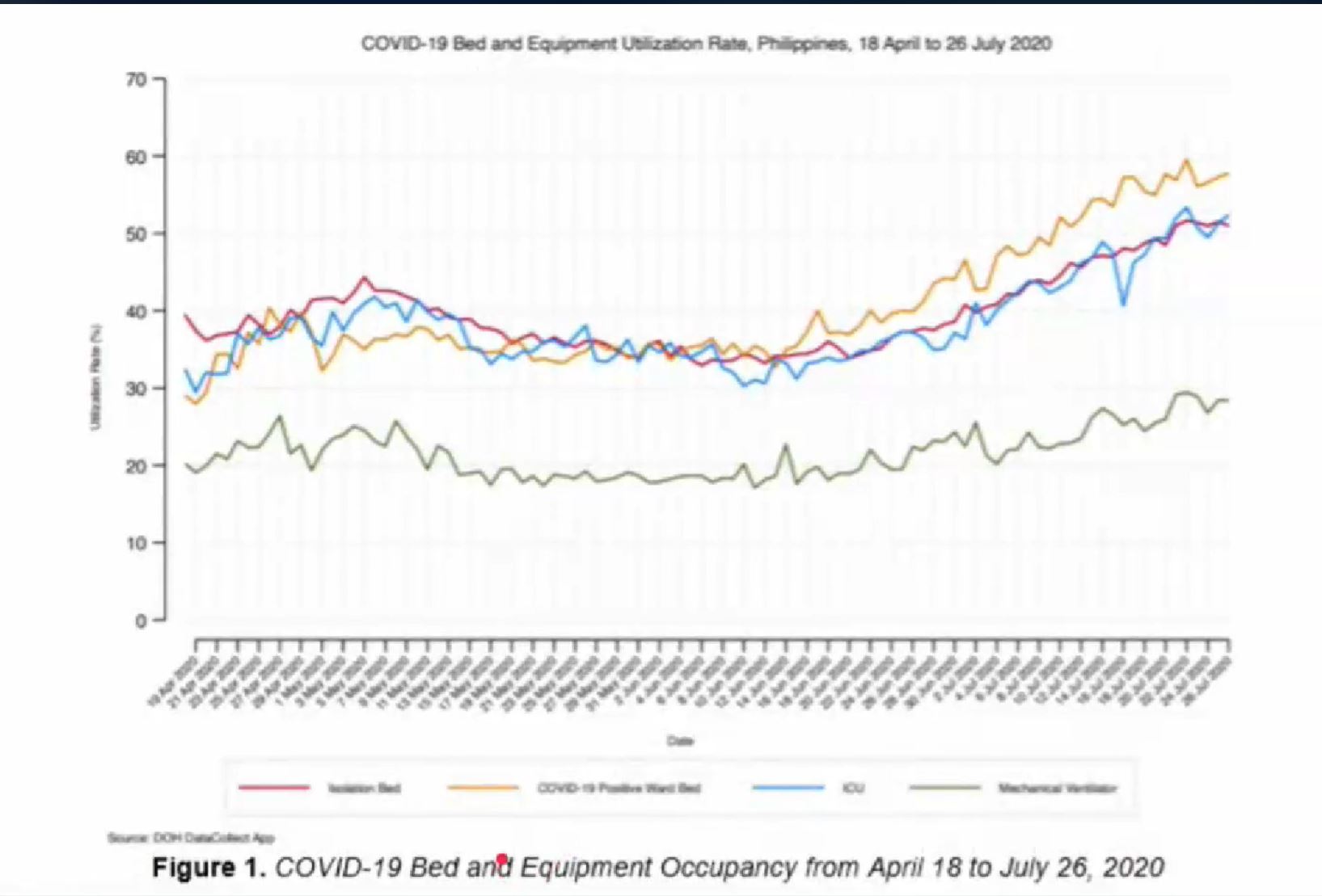 All these are data as of July 26, but Vergeire said that the DOH is already seeing an increasing trend in utilization rate for hospital beds being occupied by COVID-19 patients that the percentages would even go higher in the days to come as more data come in.