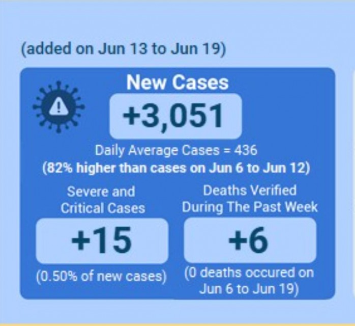 In data that the DOH had recently released, the new cases from June 13 to 19 reached 3,051, with the daily average number of cases hitting 436.